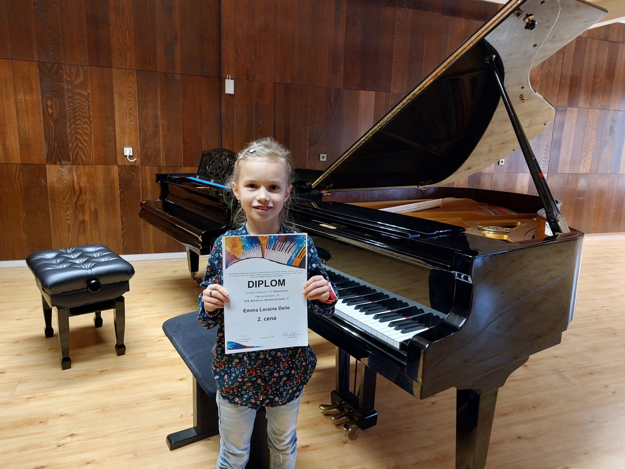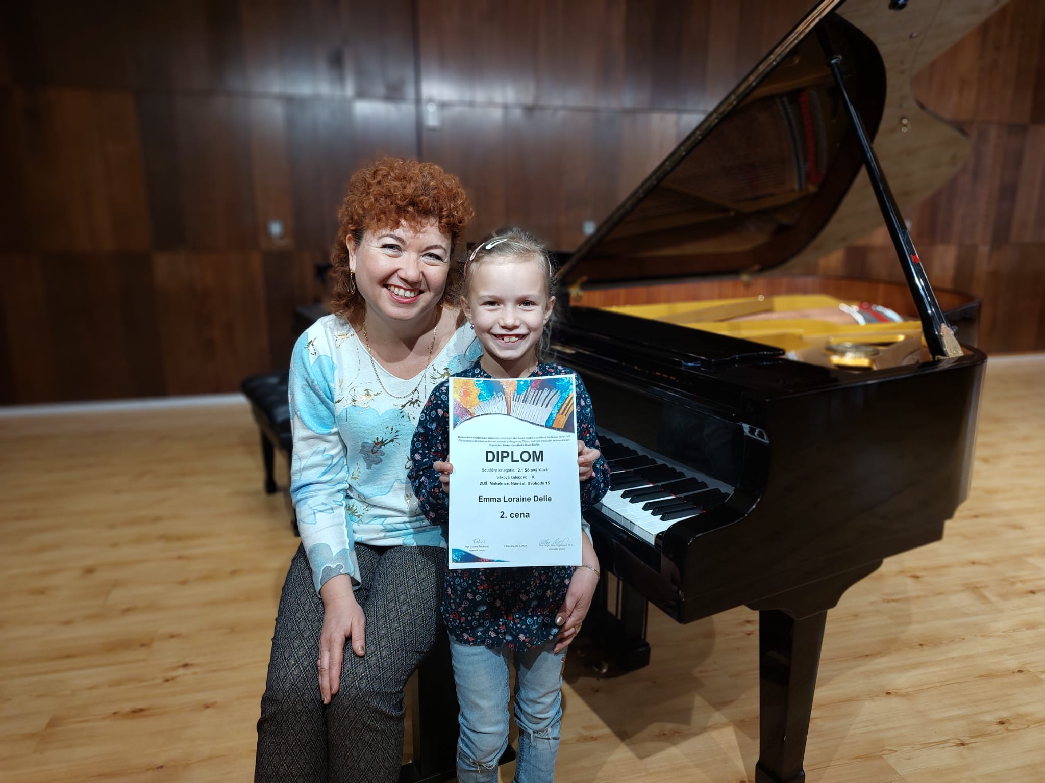 Gratulujeme Emmě Lorraine Delie, žákyni prvního ročníku oboru hra na klavír, která 28. února 2024 získala druhou cenu v okresním kole soutěže ZUŠ ve hře na klavír. Soutěž pořádá MŠMT jednou za tři roky a konala se v Zábřeze. Emmu na soutěž připravila její paní učitelka Olga Pallová, které taktéž gratulujeme a děkujeme za přípravu!